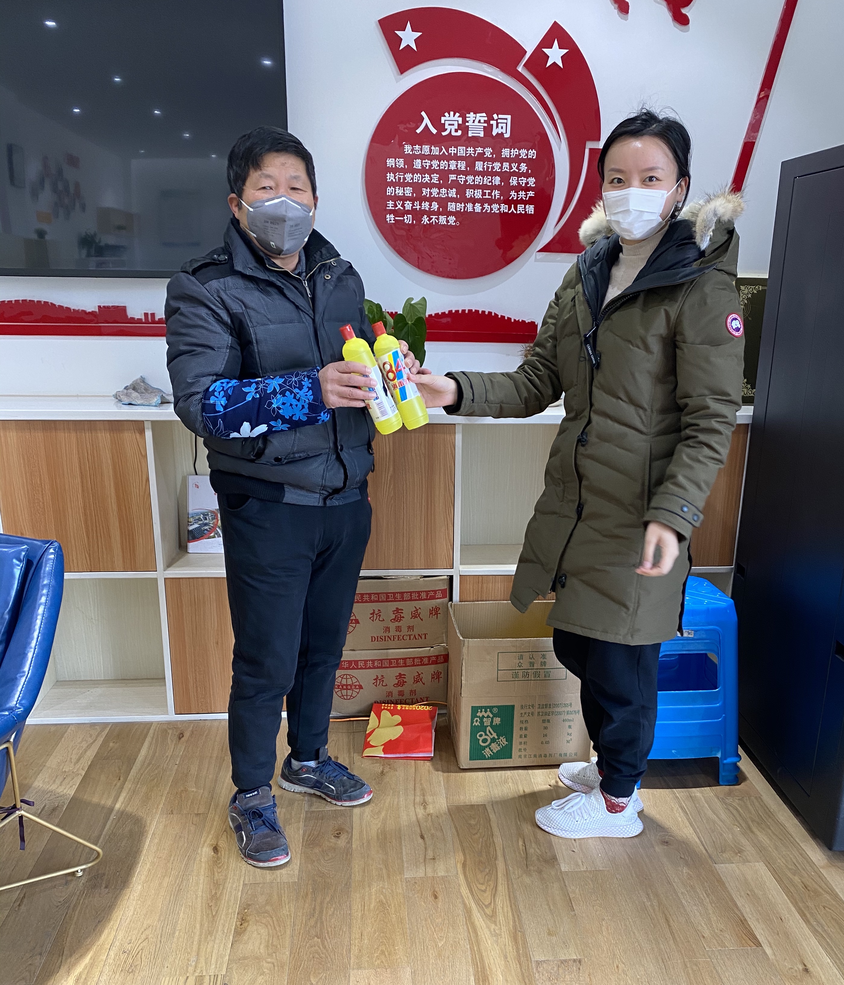 在抗击新型冠状病毒肺炎疫情的关键时刻,2月9日,国资经营公司第五党支部及时将400瓶84消毒液送达公司驻村指导员所驻奉贤区庄行镇新叶村,帮助基层一线解决“燃眉之急”。