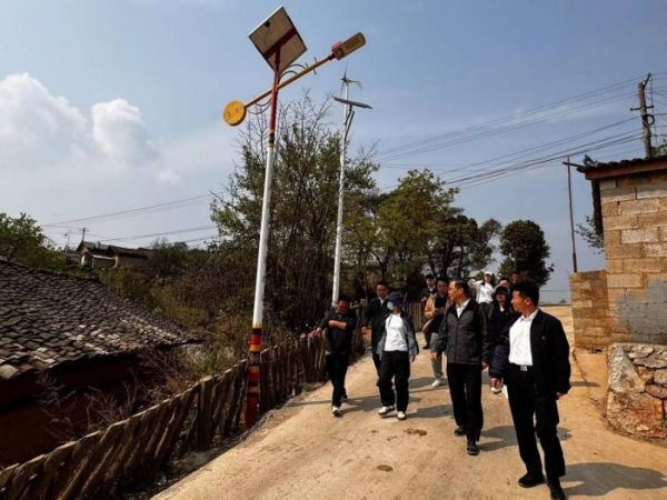 座谈会后,在村党总支书记、村委会主任李双江的介绍下,何士林一行实地考察了村容村貌,参观了由公司捐建的党建联建宣传阵地、“亮灯工程”路段等,了解出水寨村近年来脱贫攻坚的成果及乡村振兴的进展情况。
