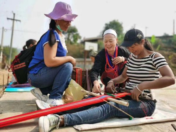 设计团队与非遗帮扶团队探讨如何为佤族织锦进行创新。杜海涛摄